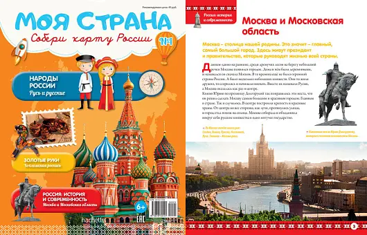 Коллекция красочных журналов расскажет тебе, как росла наша страна. Ты узнаешь, какие в разных частях России природа и климат, как много народов живет на её просторах. А увлекательные игры и викторины помогут лучше запомнить прочитанное. Также в каждом журнале ты найдешь подробные инструкции по сборке карты.